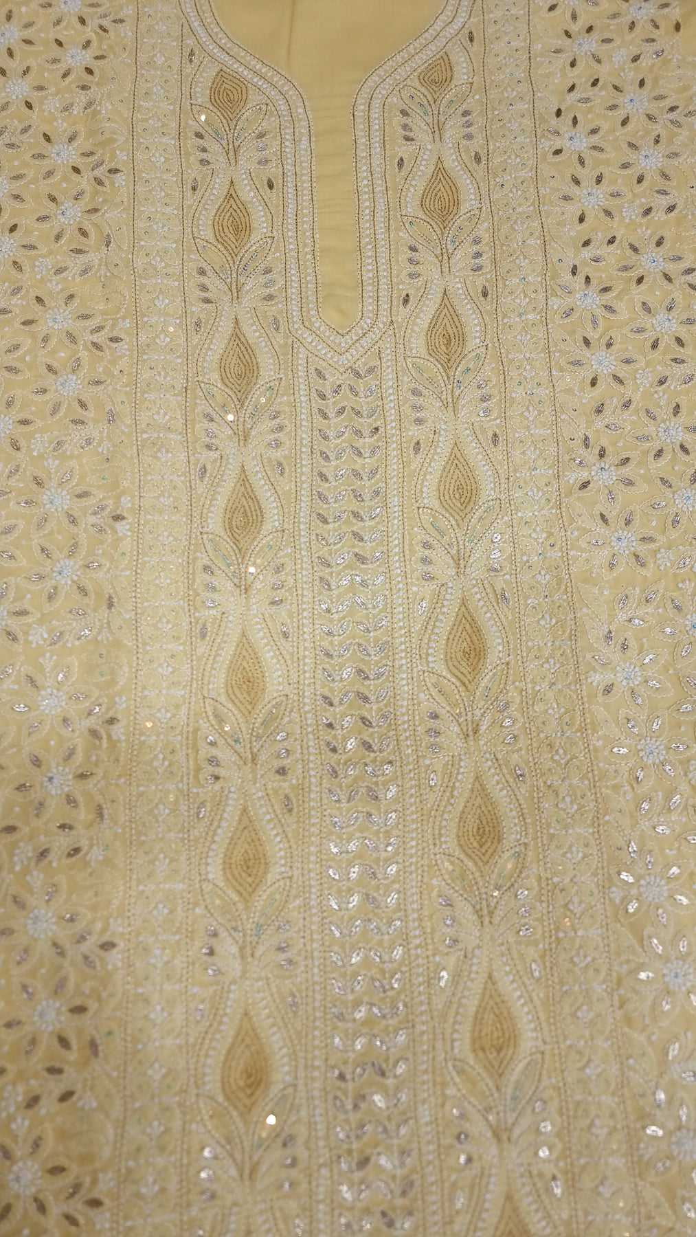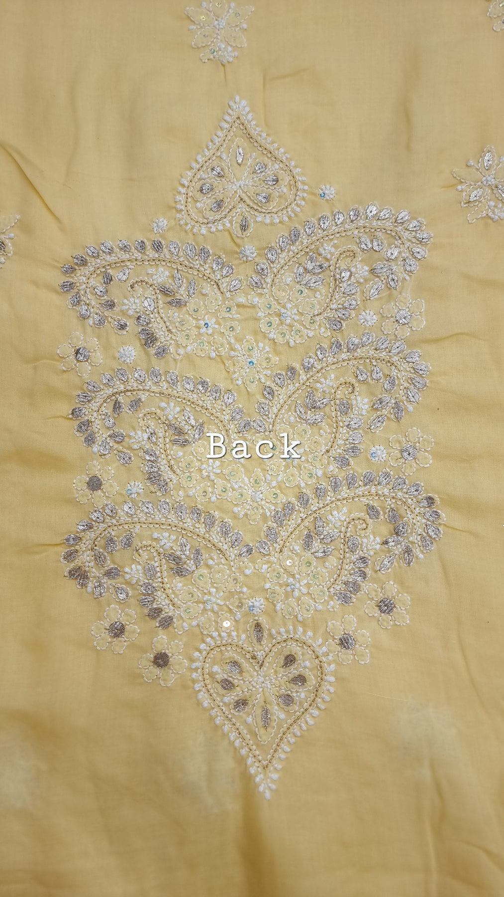 Yellow Unstitched Soft Cotton Chikankari Suit Set – Aari, Kasab & Gotta Patti Embellished with Pure Chiffon Dupatta